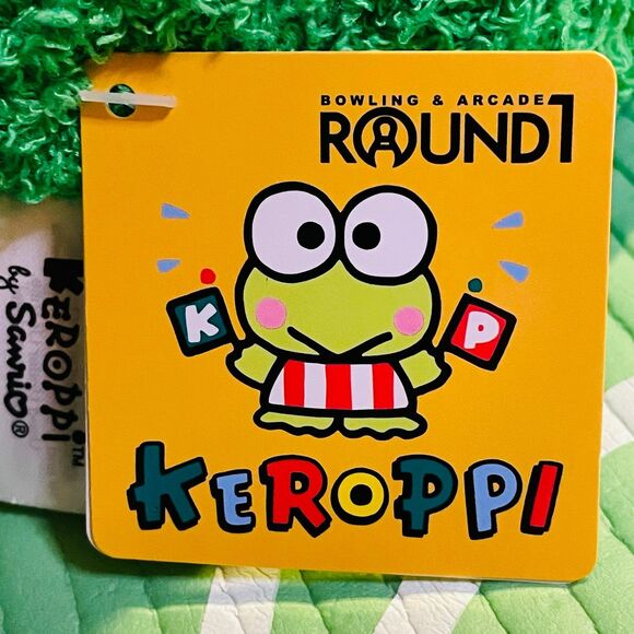 Authentic brand new Sanrio Keroppi plush with the tag on. He lives in a house close to the Donut Pond with his family and wears a green T-shirt and a red bow tie! Made with special material, soft & fuzzy. A great plus to your Sanrio Collections.