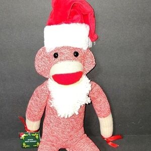 This cute little Santa sock monkey looks like he's waiting to get into some trouble-will it be at your house? NWT but I do see a few small faint spots on the white parts of his right arm and leg. It has been fabric sanitized as are all of my rescued treasures.