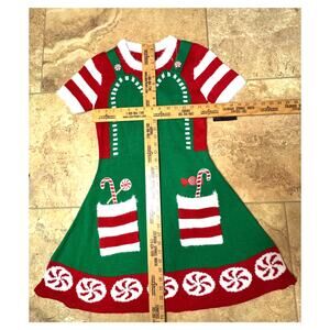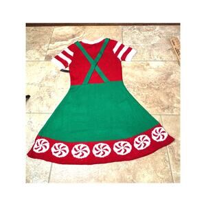 NWT Santa's Sweets Helper Apron Knit Dress Size M (7-9) Candy Cane Buttons