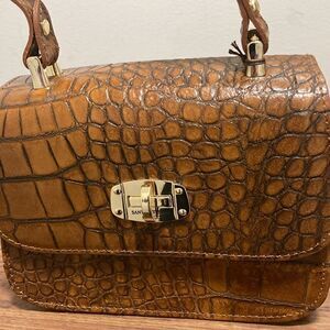 NWT Santo Lucia Couture Croc Embossed Cognac Leather Bag withTop Handle & Strap.