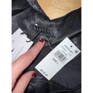 The NWT Sanctuary Black Slip Dress in size L is a stylish and elegant choice for any special occasion. Made from luxurious satin fabric, this maxi dress features a flattering long length and a sleek design that is perfect for a sophisticated look. The black color adds a touch of versatility, making it easy to pair with different accessories for a variety of outfits. Perfect for women who want to make a statement with their fashion choices, this Sanctuary dress is a must-have addition to any wardrobe.