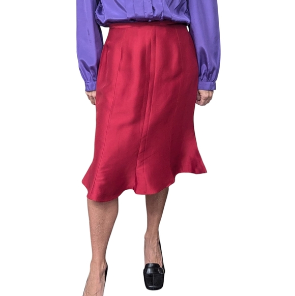 NWT Sara Campbell 100% Silk Red Bias Cut Midi Skirt Size 6 Quiet Luxury Holiday