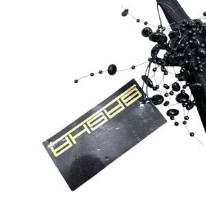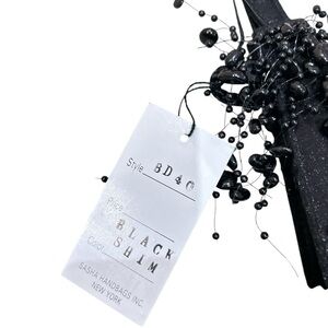 New with tags Sasha Black Beaded shimmering fabric Bag with corded strap. Cool shape. Perfect for any occasion, this elegant bag features intricate beadwork that adds a touch of sophistication to your ensemble. New!