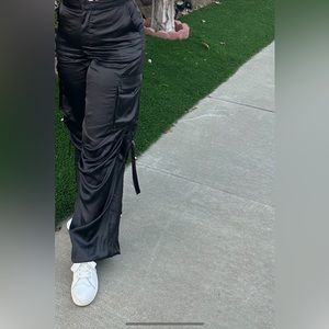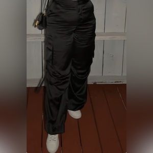 NWT: Satin Black Ruched Pants