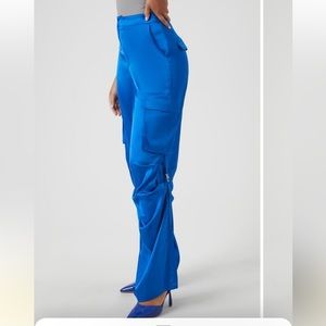 Super cute and brand new, never worn! I got this in two sizes and didn’t get to returning this size that didn’t fit. The stock pics are shown in blue cause the black one is sold out online and pics aren’t available, however I put reference pics of my black satin pants! This can be dressed up with heals or worn with sneakers, super nice and comfy! Sold out online!