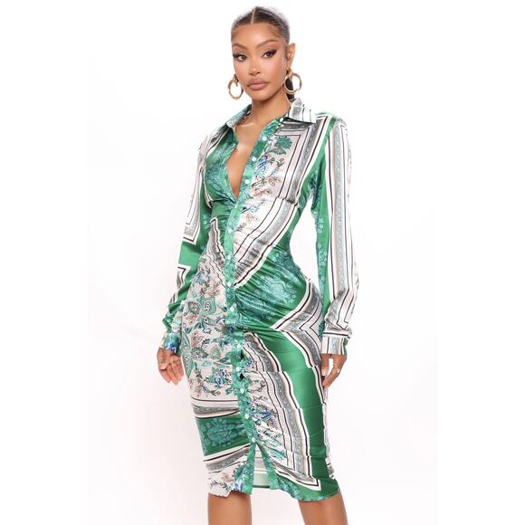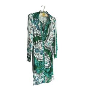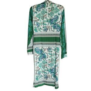 NWT Satin Paisley Shirt Dress Medium Green Baddie Loud Luxury Glam Regency Chic