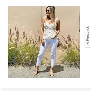 First photos are to show style. Actual top is a cream color with no floral pattern