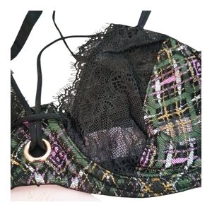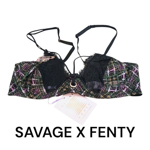 NWT Savage X Fenty Plaid Lace Half Cup Bra – Black Purple – 34DD