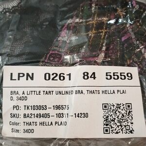 NWT Savage X Fenty Bra That's Hella Plaid Black Size 34DD Whimsigoth