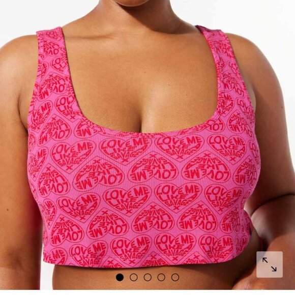 Brand new with tags this Savage X Fenty crop sleep top featured a pink design with the words "love me like a savage x" inside a heart shape. The top has a bra built into the top. Made of a very comfortable material.