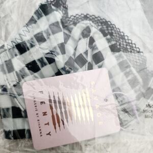 Savage X Fenty, Rihanna, Gingham, Check, Plaid, Plunge, Unlined, Underwire, Fishnet, Logo, Check Print, Retro, 32C, NWT, Lingerie.