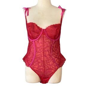 NWT Savage X Fenty Sexy Red Pink Lace Teddy Lingerie Women’s 2X