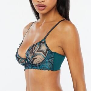 NWT Savage X Fenty Shining Star Half Cup Plunge Bra Blue 34C