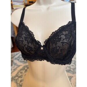 NWT Savage X Fenty Size 38B Black Bra Scalloped Lace Unlined Sheer Underwire