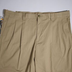 NWT Savane Elastic Comfort Waist Dress Khaki Pleated Cuffed Pants Men 40x32 (B5)