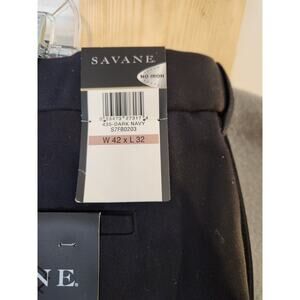 NWT Savane Mens No Iron Flat Front Navy Blue Comfort Waist Dress Pant Sz 42 x 32. 100% Cotton. Comfort Waistband. Smoke-free home. Check out my other items I will combine shipping