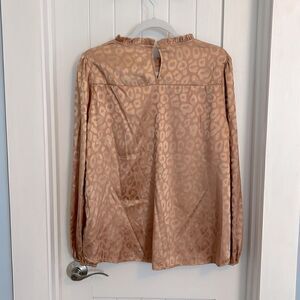 NWT Savanna Jane Satin Gold Leopard Popover Ruffle Neck Blouse Sz Medium