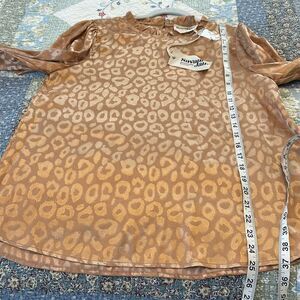 NWT Savanna Jane Satin Gold Leopard Popover Ruffle Neck Blouse