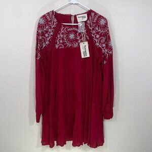 NWT Savanna Jane Size M Embroidered Long Sleeve Dark Red Dress Long Sleeve NEW