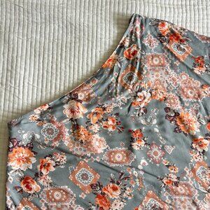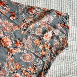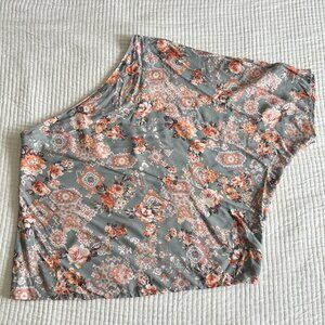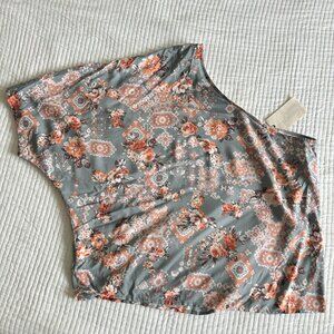 NWT Savanna Jane Top Womens Small Grey Peach Floral Print One Shoulder Blouse S