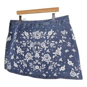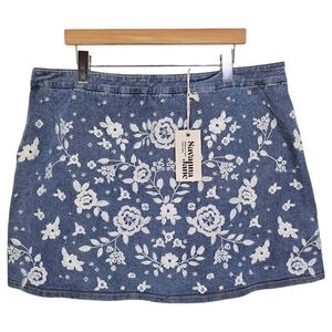 NWT Savanna Jane Western Boho Floral Embroidered Cotton Denim Mini Skirt 1X