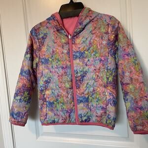 NWT Save The Duck Reversible Puffer Jacket Coat Size 6 Pink Multicolor Abstract