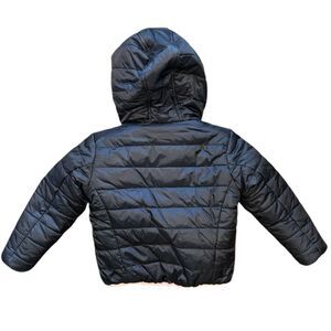 Let your ducklings venture out in style and comfort with the adorable reversible jacket. This hooded style offers ample padding with animal-free down for guilt-free comfort. Its classic silhouette features a practical zippered front and subtle side zipped pockets for added functionality.