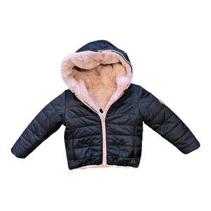 NWT Save the Duck | Girls Mimi Black Pink Plush Reversible Animal Free Jacket 2T