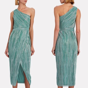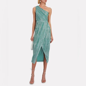 NWT Saylor Alorna One-Shoulder Metallic Midi Dress Green Size Large