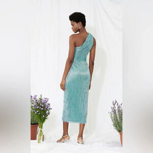 NWT Saylor Alorna One-Shoulder Metallic Midi Dress Green Size Large.