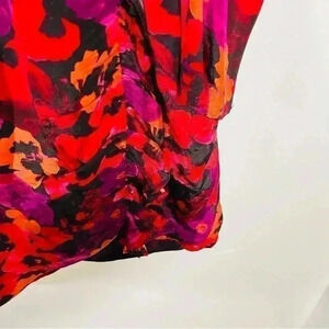 Description: Channel the 80s in this v-neck poppy printed mini dress. The voluminous shoulder and ruffle skirt detail will be sure to create a commanding look. Partially Lined. Zipper closure on back. No stretch. Dry clean only.