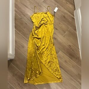 NWT Saylor Cyndey Elegant Gold Velvet Midi Dress - Medium - yellow