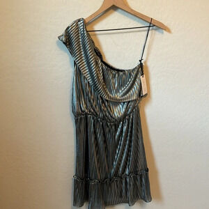 NWT Saylor Metallic Gun Metal Silver One Shoulder Mini Ruffle Dress Size S