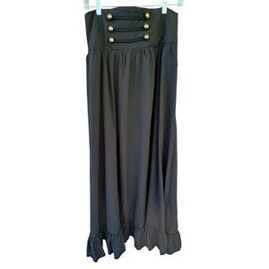 The Scarlett Darkness high-waist maxi skirt is designed for those who appreciate a blend of elegance and uniqueness. Its decorative buttons and ruffled hem add a touch of vintage charm, while the black color makes it versatile for various occasions. The lightweight fabric ensures comfort, making it suitable for all-day wear.