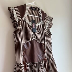 NWT Scarlet Darkness Brown White Striped Renaissance Dress