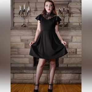 NWT Scarlet Darkness Gothic Flutter Sleeve Lace Neck A-Line Dress Sz-22W