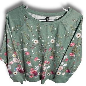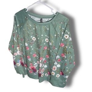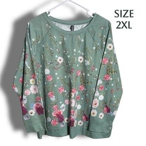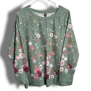 NWT Scattered Floral Spring Floral Long Sleeve Top Size 2XL Green