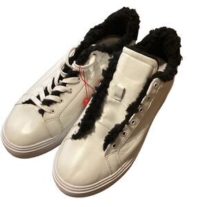 NWT Schutz KRISTIN White Leather Platform Sneakers Black Faux Fur Lining 8.5