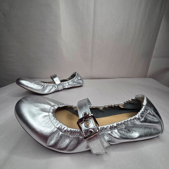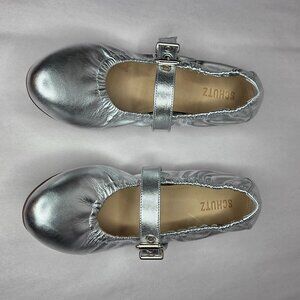 NWT Schutz Women's Calita Metallic Silver Leather Ballerina Flats