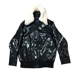 NWT Scoop Women Oversized Faux Leather Jacket Navy Size XS