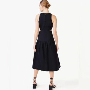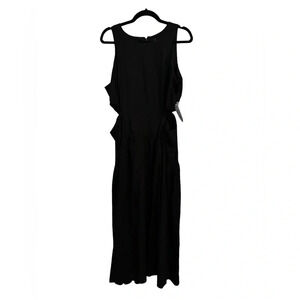 NWT Scoop Women's Linen Side Cutout Midi Dress Black Crew Neck Size XL
