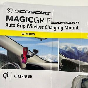 NWT Scosche Magic Mount Charge 4 Extendo Wireless Chargng Telescoping Mount. New in package. It has been torn open slightly on one edge, but nothing has been removed.