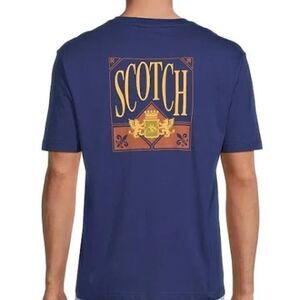 NWT Scotch & Soda Amsterdam Relaxed Fit Logo Graphic T-Shirt Short Sleeve 100% Cotton Blue Color Size L