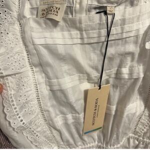 NWT Scotch & Soda Eyelet Ruffle Organic Cotton Coquette Pinafore White Dress
