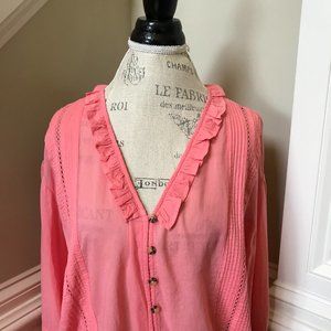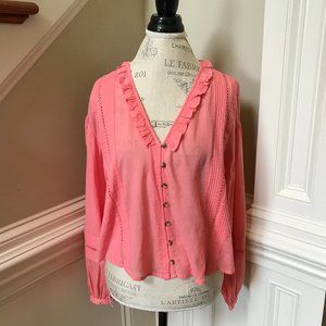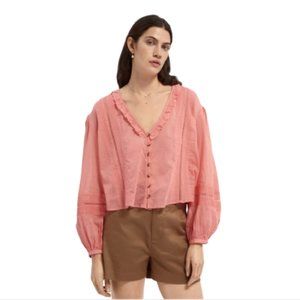 NWT Scotch & Soda Lace Insert Blouse Top Shirt Womens Small Pink V-Neck Pin Tuck
