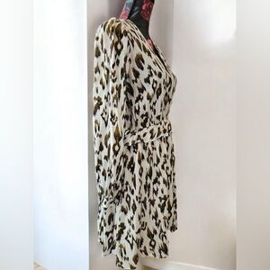 NWT! Scotch & Soda Leopard Print Long Sleeve Linen V Neck Mini Dress (size 4)