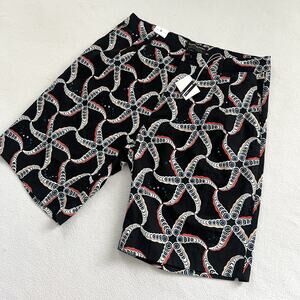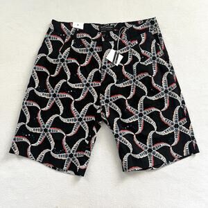 NWT Scotch & Soda Men Starfish Print Linen Blend 10” Pleated Loose Fit Shorts 30