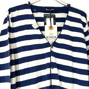 NWT Scotch & Soda Varsity Striped Cotton Light Cardigan Sweater Navy Cream L