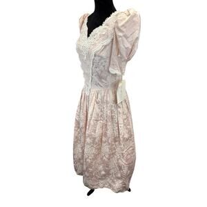 NWT Scott McClintock Vintage Pink Lace Puff Sleeve Dress Victorian Style sz 12