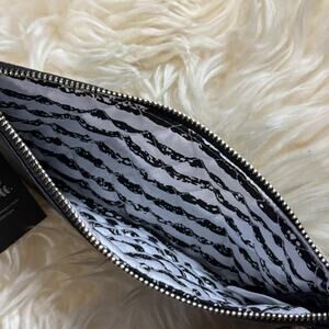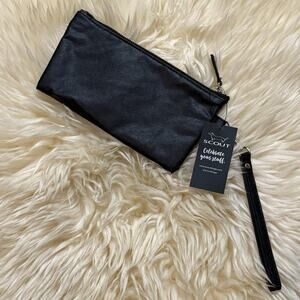 NWT Scout Bags Kate Wristlet Black Faux Leather Quilted Stripe Interior 8” X 4”